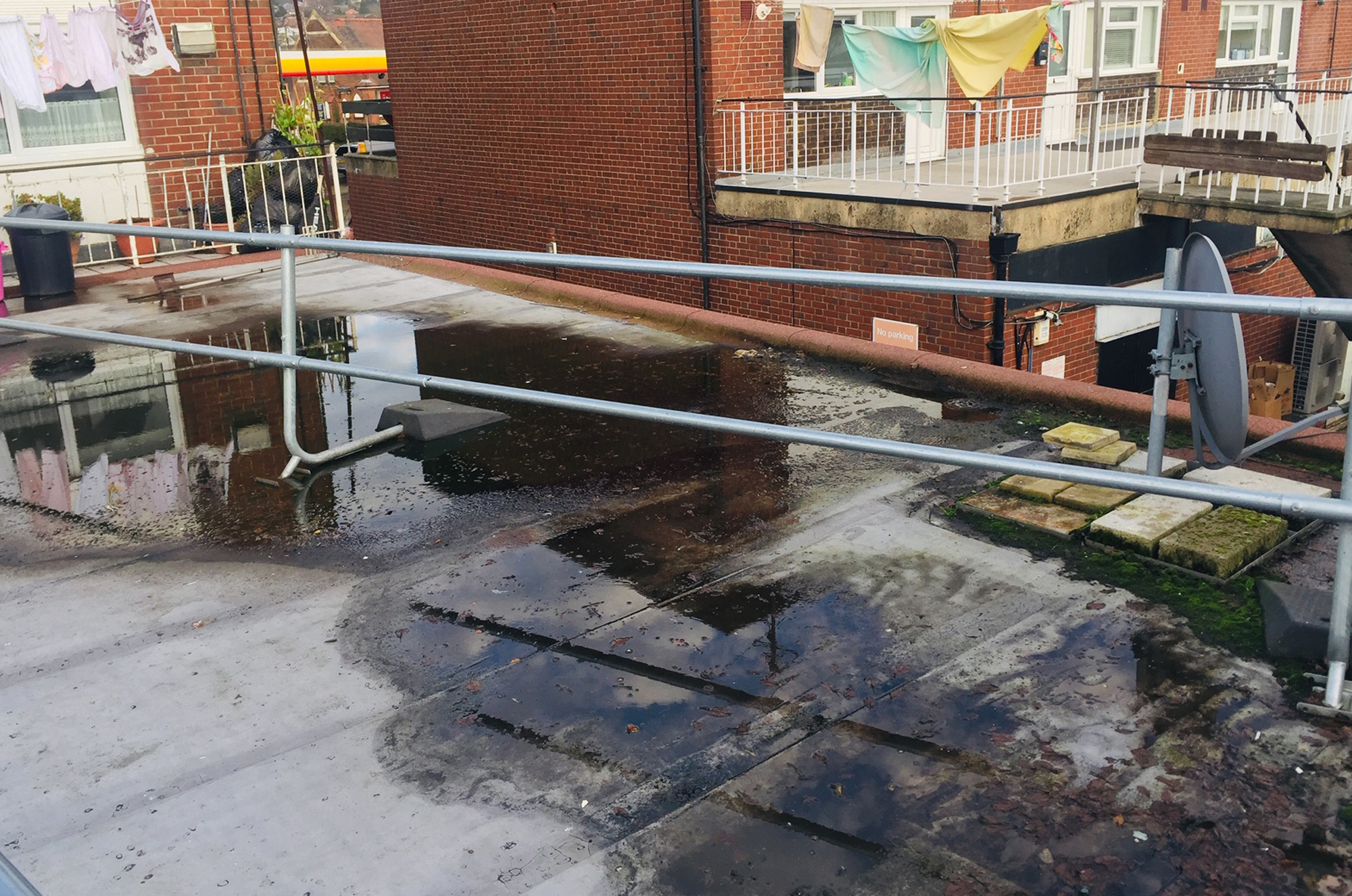 The job was to apply bitumen primer and fix grey 5mm high performance felt to the entire roof new drips and flashings to edge detail.
